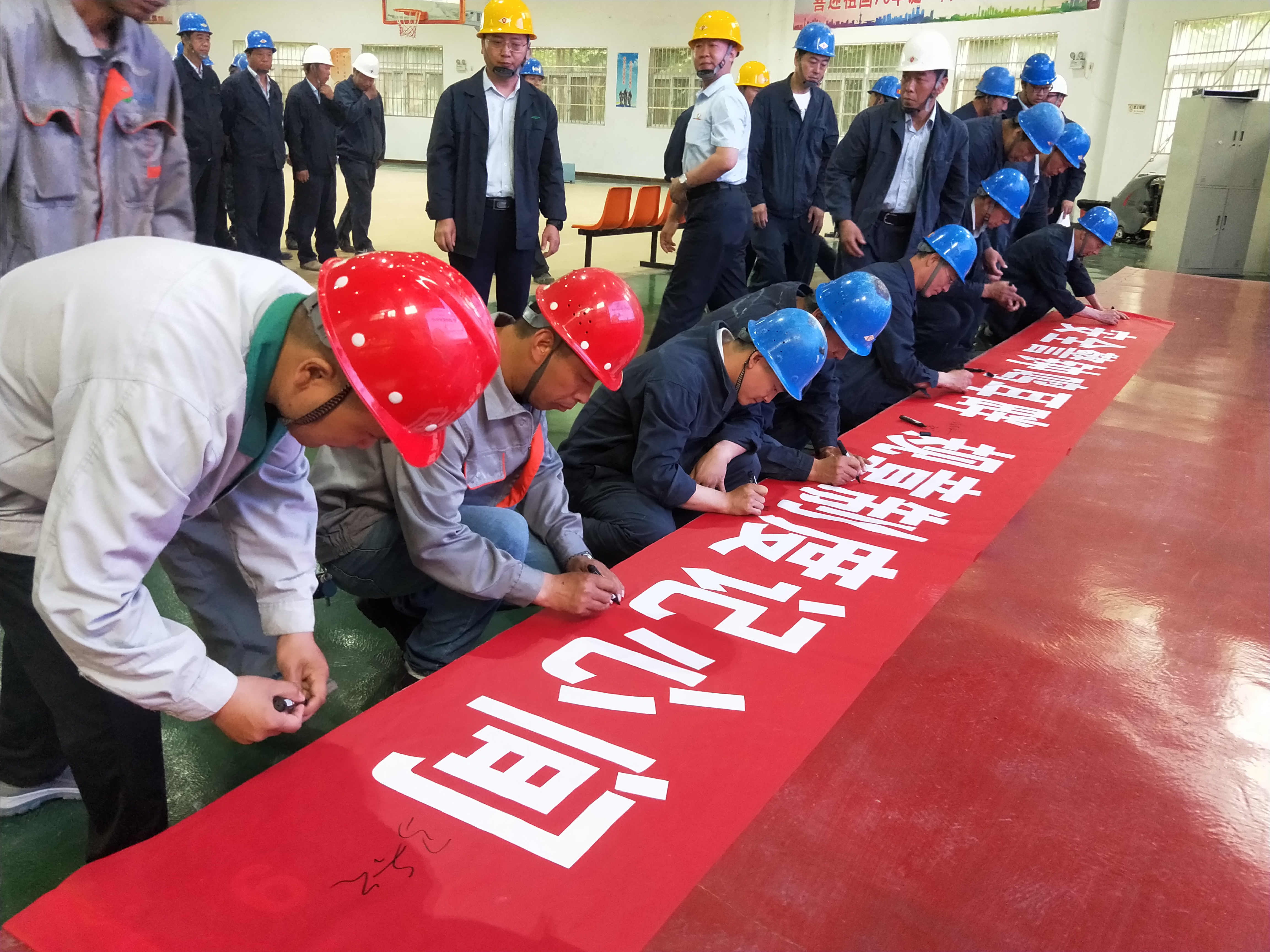黃河同力副總經(jīng)理陳克政宣布黃河同力“安全生產(chǎn)月”啟動(dòng)儀式正式開(kāi)始。全體人員在安全標(biāo)語(yǔ)紅幅上簽名。