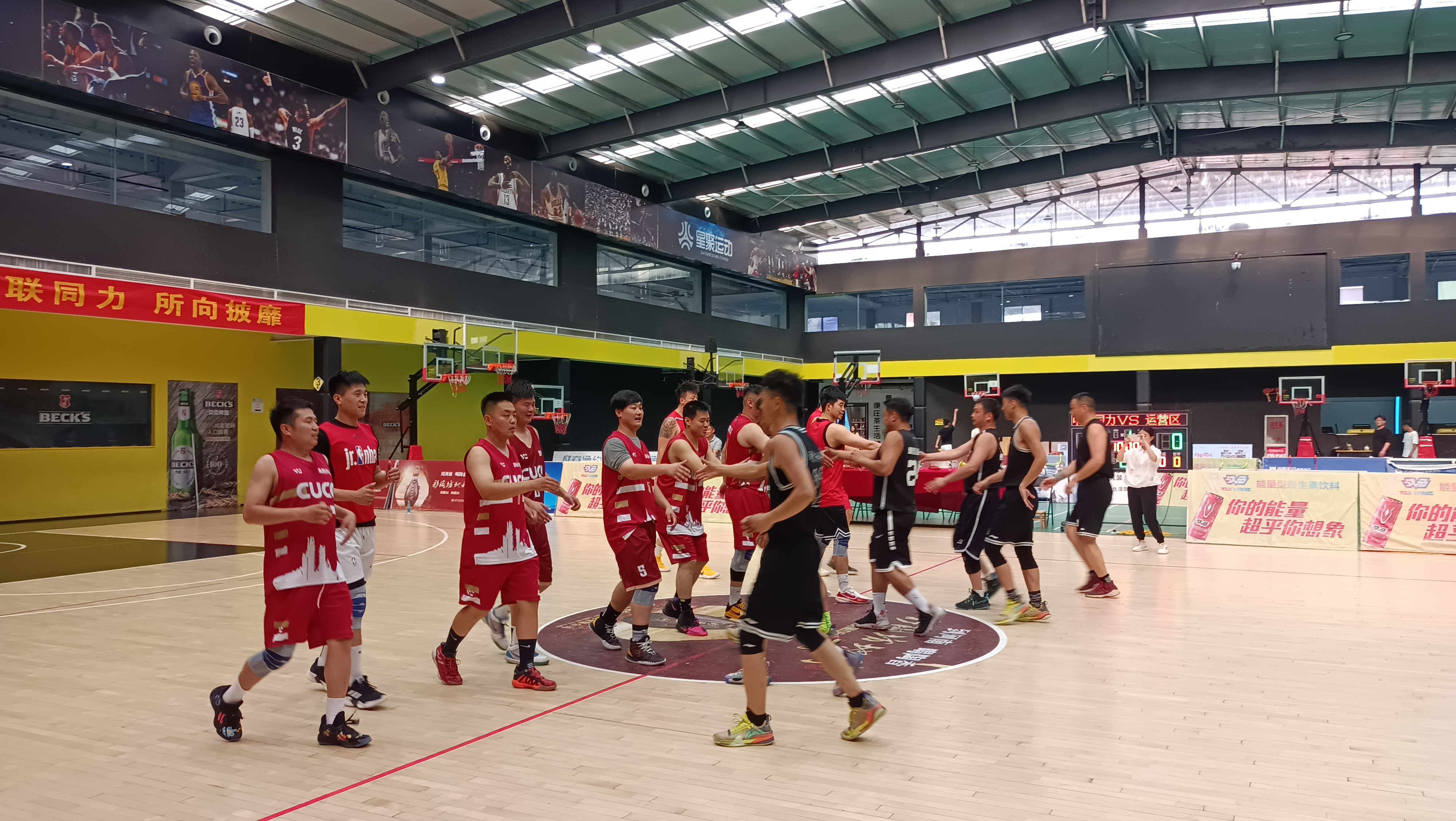 比賽開始,鄧州中聯(lián)隊(duì)通過內(nèi)外線的嫻熟配合和快攻等戰(zhàn)術(shù),很快取得大幅領(lǐng)先優(yōu)勢(shì)。面對(duì)困難,公司聯(lián)隊(duì)積極調(diào)整,加強(qiáng)后場(chǎng)防守,利用核心隊(duì)員實(shí)施籃下強(qiáng)攻,同時(shí)配合外圍三分進(jìn)攻,逐步穩(wěn)住了陣腳。后半場(chǎng)比賽,雙方進(jìn)入佳境,你來我往,打出多個(gè)精彩快攻配合,贏得觀眾一陣陣掌聲……友誼賽在激烈而又歡快的氛圍中落下帷幕,雙方隊(duì)員相互握手致意并合影留念。